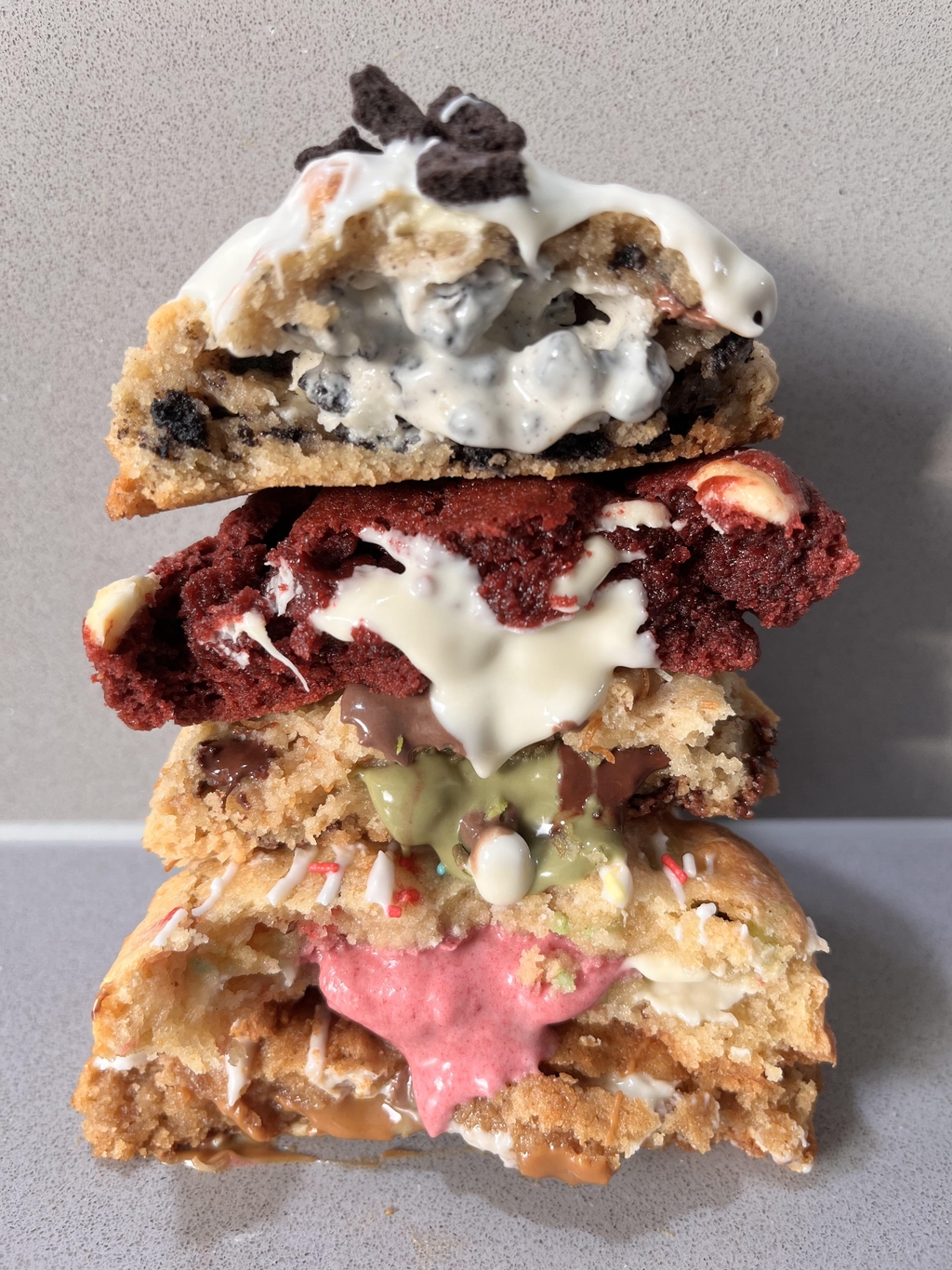 Driven by that passion, I spent months testing recipes to find the perfect equilibrium of flavor, texture, and sweetness. I didn’t just want a cookie that looked beautiful; I wanted an experience that tasted extraordinary. Today, every stuffed cookie is hand-scooped and baked with that same love and precision.